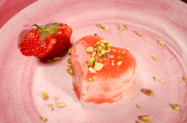 Alla Hjärtans Dags desserter, Alla Hjärtans Dags samtliga recept, Desserter, Glass / Sorbet, Jordgubbsdesserter, Recept, Temadagars samtliga recept Frusna moussehjärtan täckta med jordgubbssås 0 kommentarer