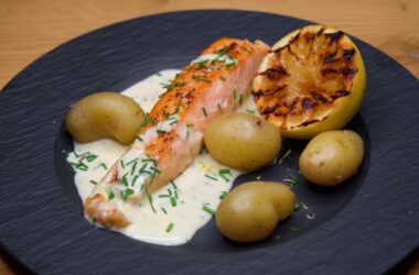 Fisk, Melodifestivalen-recept, Melodifestivalens huvudrätter, Recept, Schlager-recept, Torsk Stekt torskrygg med blomkål- och potatispuré samt chorizosmulor och spenatsallad 0 kommentarer