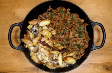 Kött, Nötkött, Recept Strimlad vitlöksbiff med parmesan- och vitlöksdoftande klyftpotatis 2 kommentarer