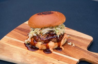Asiens huvudrätter, Asiens samtliga recept, Färs, Fläskfärs, Fläskkött, Hamburgare, Koreanskt, Kött, Nötfärs, Nötkött, Recept Koreansk BBQ-burgare med kimchislaw 0 kommentarer