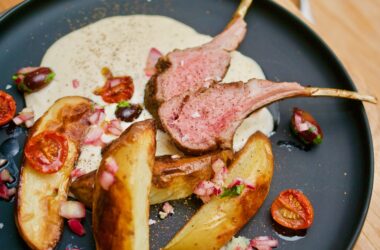 Kött, Lammkött, Recept, Sous Vide, SV huvudrätter Lammracks med getostkräm, bakade cocktailtomater och oliver i rödlöksdressing 0 kommentarer