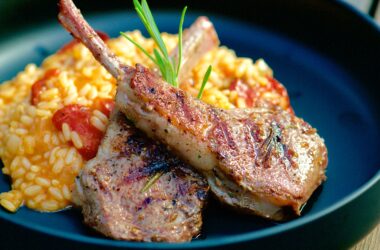 Grillat, Grillat kött, Kött, Lammkött, Recept, Sous Vide, SV huvudrätter, ViktVäktarnas samtliga recept, VV kött Grillade lammrackskotletter med tomatrisotto 0 kommentarer