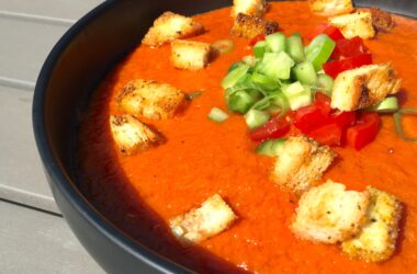 Årstidernas samtliga recept, Grönsakssoppor, Recept, Sommarens förrätter, Sommarens huvudrätter, Sommarens samtliga recept, Soppor, Spanska huvudrätter, Spanskt, Vegetariskt, ViktVäktarnas samtliga recept, VV förrätter, VV soppor, VV vegetariskt Gazpacho med rostade grönsaker 0 kommentarer