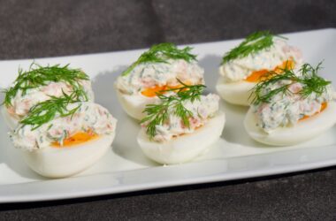 Buffé, Fisk, Högtidernas samtliga recept, Lax, Midsommarens buffé, Midsommarens samtliga recept, Påskens buffé, Påskens samtliga recept, Recept Ägghalvor med rökt lax och pepparrot 0 kommentarer