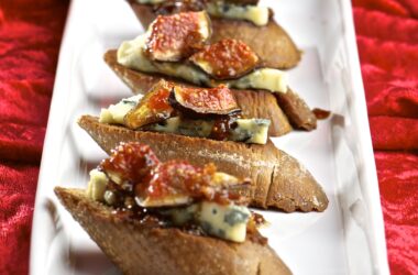 Högtidernas samtliga recept, Julens glöggmingel / advent, Julens samtliga recept, Julens tilltugg, Recept, Tilltugg med ost, Tilltuggens samtliga recept Pepparkaksbruchetta med Saint Agur och karamelliserade fikon 0 kommentarer