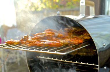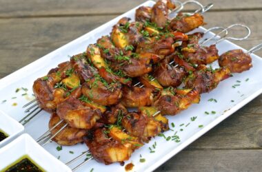 Årstidernas samtliga recept, Grillad fisk / skaldjur, Grillat, Grillspett, Räkor, Recept, Skaldjur, Sommarens huvudrätter, Sommarens samtliga recept Honungsmarinerade räkspett med nektariner och prosciutto 0 kommentarer