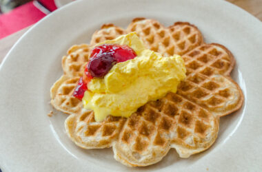 Brunch / Frukost, Högtidernas samtliga recept, Julens bruncher / frukostar, Julens desserter, Julens samtliga recept, Recept, Receptluckor Jul, Söta våfflor, Temadagars samtliga recept, Våffeldagens samtliga recept Receptlucka nr 23 – Julvåfflor med saffransgrädde och körsbärssylt 0 kommentarer