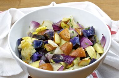 4th of July, Amerikanska tillbehör, Amerikas samtliga recept, Nudlar / Potatis / Ris, Potatisrätter, Potatissallader, Recept, Vegetariskt Ljummen röd-vit-blå potatissallad 0 kommentarer