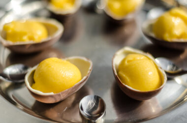 Desserter, Glass / Sorbet, Högtidernas samtliga recept, Påskens desserter, Påskens samtliga recept, Recept Chokladägghalvor med mangosorbet 0 kommentarer