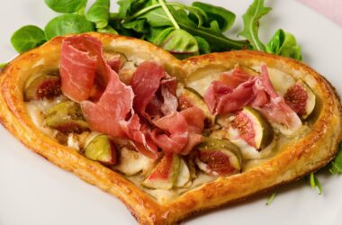 Alla Hjärtans Dags förrätter, Alla Hjärtans Dags samtliga recept, Förrätter, Recept, Temadagars samtliga recept Smördegshjärta med getost, fikon och parmaskinka 0 kommentarer
