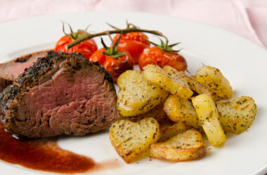 Alla Hjärtans Dags huvudrätter, Alla Hjärtans Dags samtliga recept, Kött, Nötkött, Recept, Temadagars samtliga recept Sotad oxfilé med rostade potatishjärtan, rödvinssky och ugnsbakade cocktailtomater 0 kommentarer